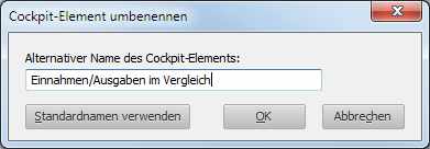 Standardmäßig hat ein Cockpit-Element einen festgelegten Namen.