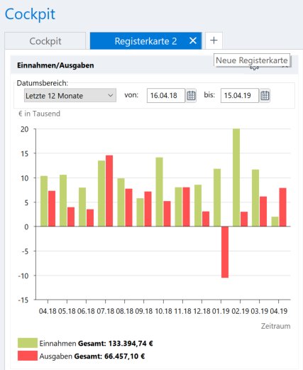 Insgesamt lassen sich bis zu 16 Elemente in einer Ansicht anzeigen. Insgesamt können Sie maximal 15 Ansichten im Cockpit anlegen.