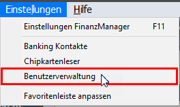 Beginnen Sie mit dem Aufruf der Benutzerverwaltung über das Menü Einstellungen oder alternativ über den neu verfügbaren Favoriten Benutzer.