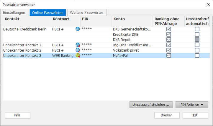 Im Passwort-Safe waren die Einträge bisher nach Konten sortiert, so dass mehrere Einträge mit unterschiedlichen Konten mit demselben Kontakt und entsprechend denselben Zugangsdaten untereinander standen.